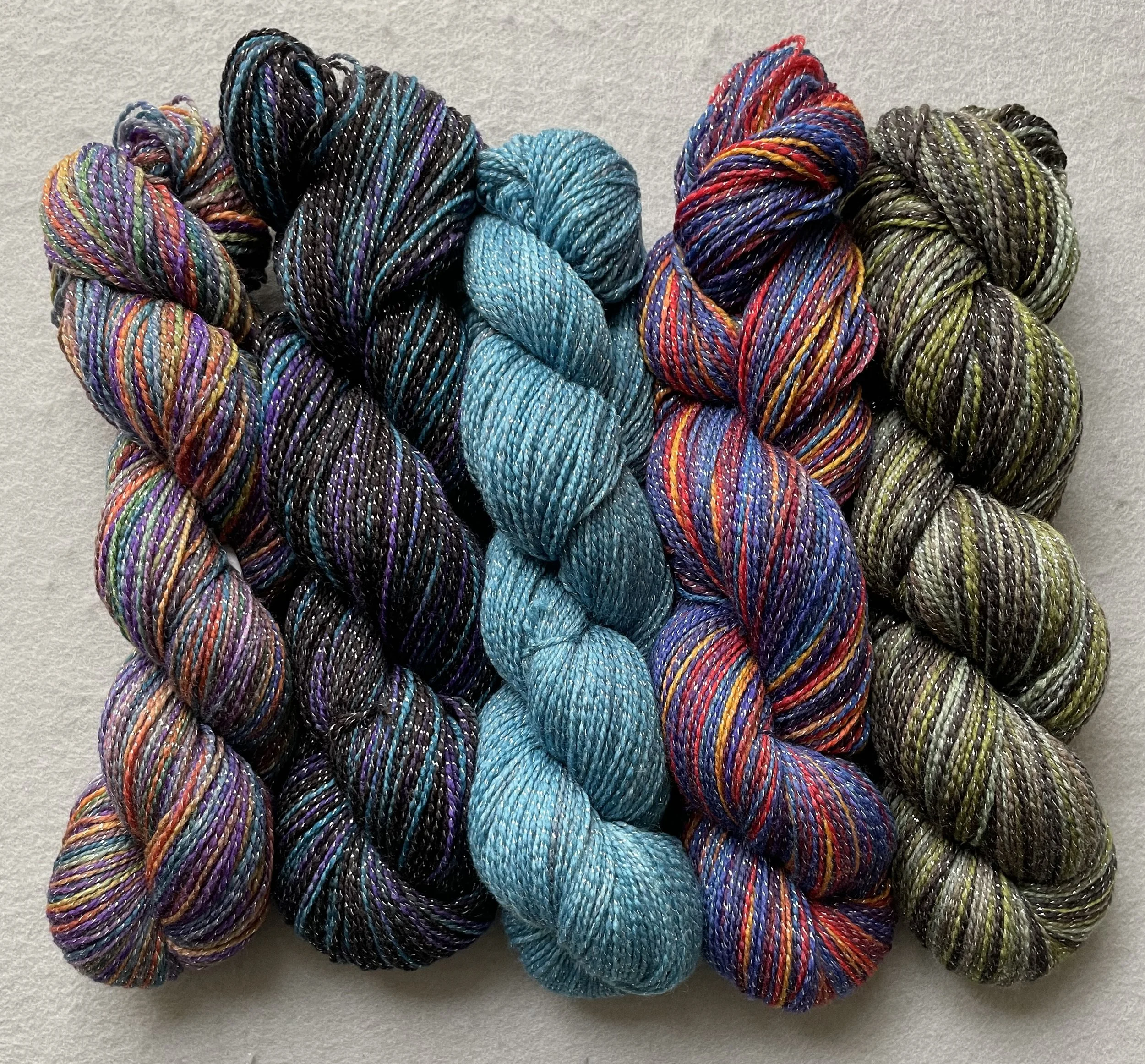 Star Bright is a soft Superwash Merino yarn with lots of glitz. It may be used alone or together with other yarns to create a sparkling impression.